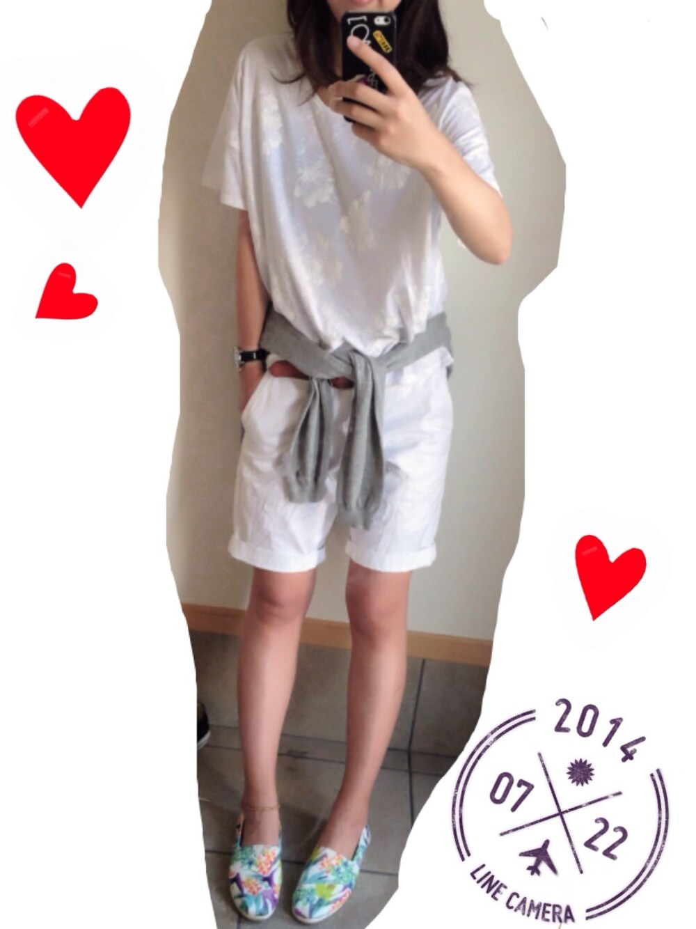 ホワイトコーデ ◡̈ パンツはジャーナル TOPSはディーホリック。 お靴はTOMS。 最近の1番のお気に入り♪