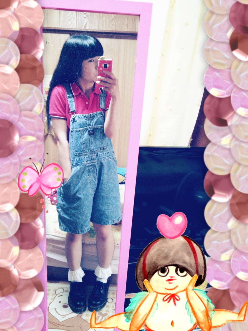 ポロシャツはすごく気に入っていて、もう何年も着てます!色褪せてます。 おーびゃーおーる、短いのは暑い夏に便利です! 上が少年っぽくなったので、足元を少女っぽくしてみました。