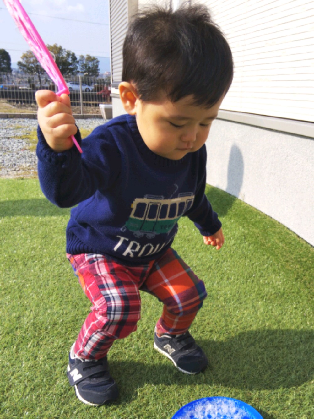 中腰好きやなぁ~ ニットとチェックが英国っぽい?!