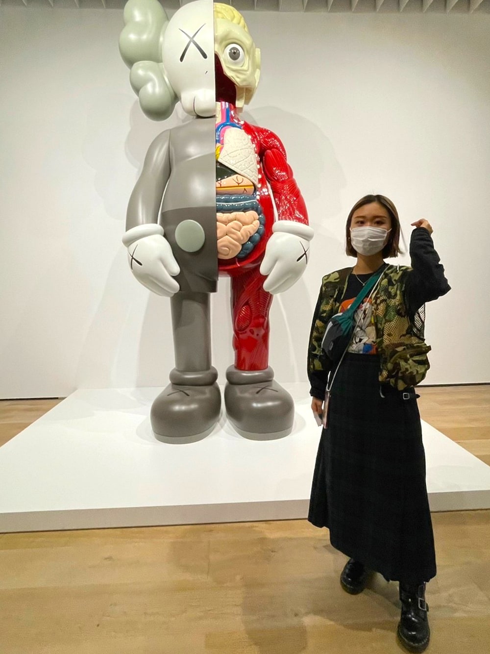 KAWS展に行った時のコーデです❤️ すごいカラフルで可愛い作品ばかりで楽しかった〜!この日は雨だったので、マーチンを履きたくてそれに合わせて見えづらいですがチェックのスカートにしてちょいロックテイストをしつつ、古着で自分らしくまとめてみました🌵🌼