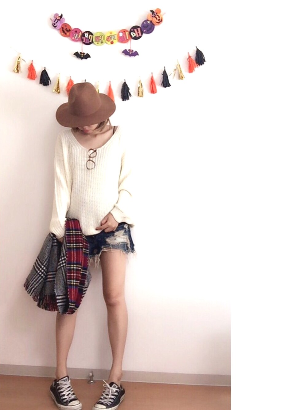 ショーパン履けたらいいのにコーデw 実際はお腹冷やすし こんなに足出して外歩けないので スカーチョ履きました😋