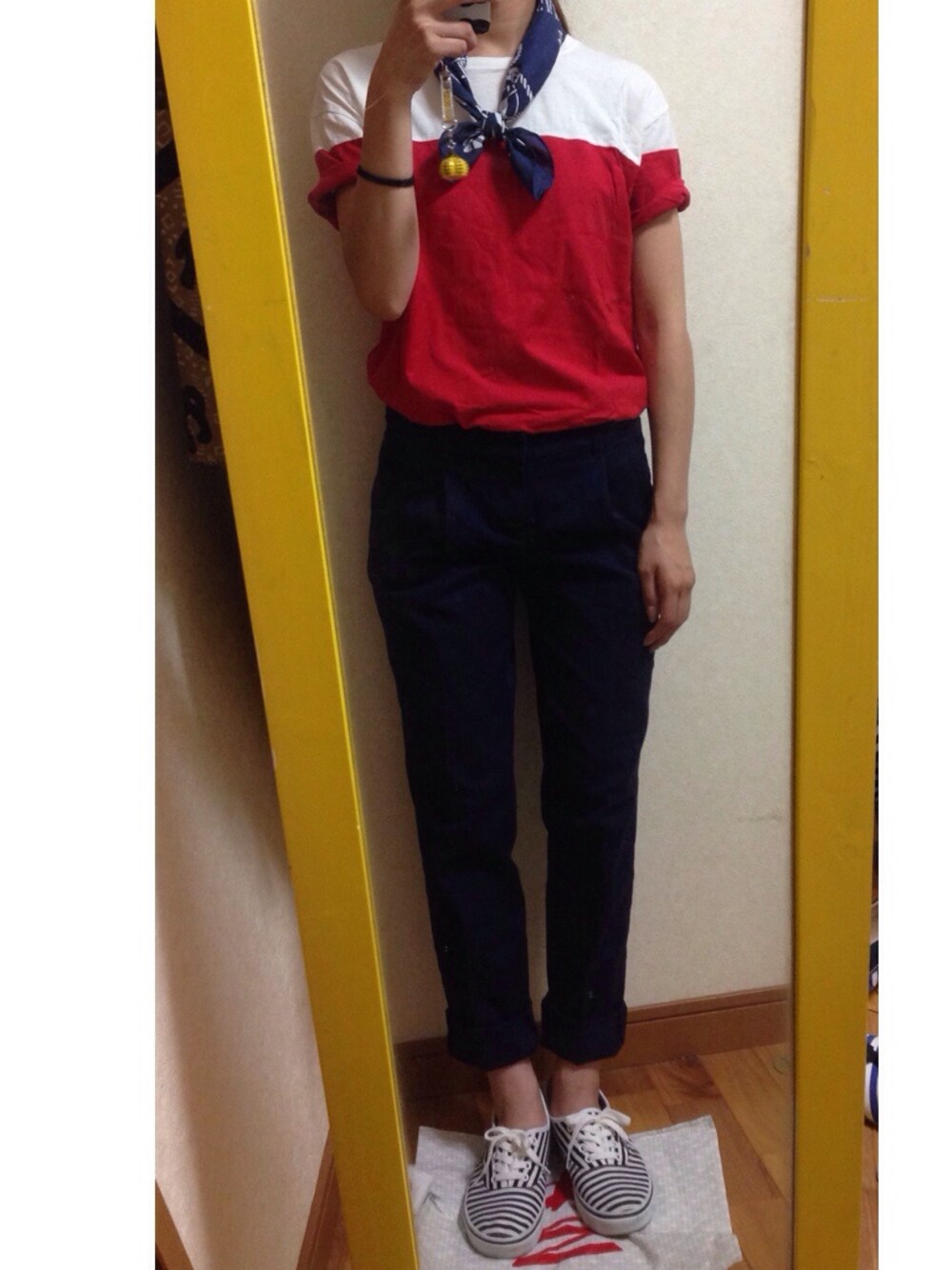 Tee phenomenon 大分昔の pants GU shoes VANS×MR.GENTLEMAN bandanna SWG BLACKPLATINUM 海沿いの海鮮を食べに行った時のコーデです。 マリンぽくね。 宮崎にもやっとGUが出来ました。
