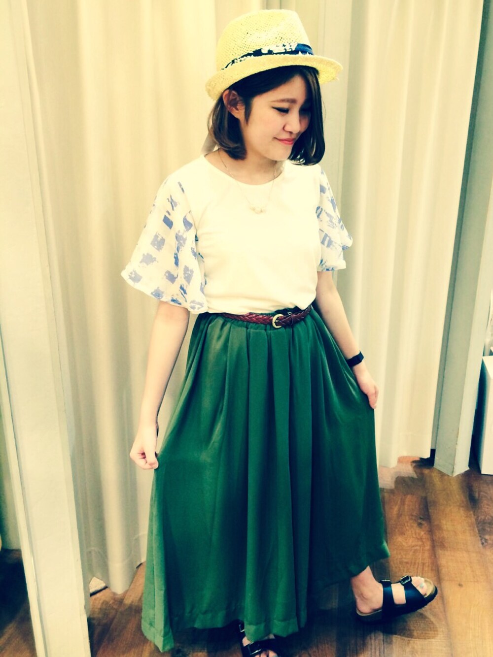 5/22よりレイカズン三宮店限定販売!! 透け感のあるチェック柄の袖が ポイントの切替えTシャツです 今回は三宮OPA20周年イベントに乗っかって 特別に袖の生地や首元など細かい所まで こだわって作らせてもらいました 春夏といえばボーダーやストライプが すっきり爽やかなイメージですが。。 こちらのチェックは直線ではなく あえてのぼかしチェック×シフォン素材に なってるので軽くて涼やかなんです 可愛いのに甘さ控えめで大人っぽい しかも嬉しい長め袖、 今から着れて二の腕カバーほっそり見せ +日焼けもブロックなんて…女子の ワガママをいっぱい詰め込みました◎ まず1人目はスカートみたいなテロッと 素材のパンツで着回し☆
