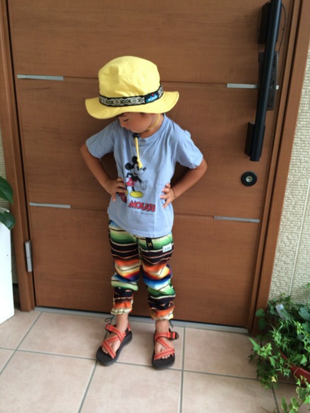 アウトドアスタイル!VintageのTシャツに、ハット、足元にはCHACOのサンダルを合わせた本格仕様!スソ部分に調整ゴム入りで、スソの長さ調節が可能です。夏のアウトドアにも、秋からも使えるパンツです!