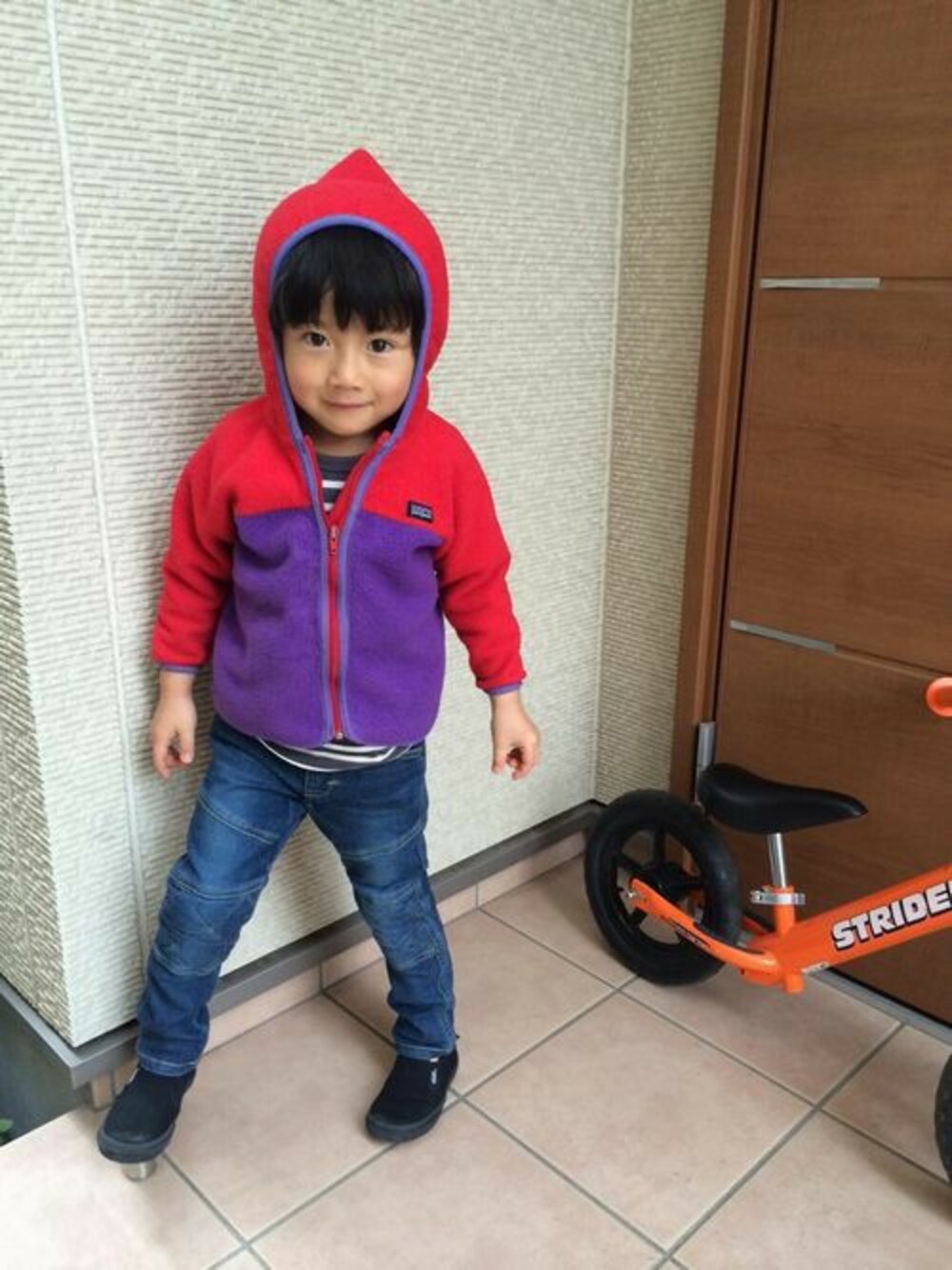 Lee×STRIDERパンツを普段のコーディネートにも!Vintageフリースのとんがり帽子をポイントに、ボトムスはハイテクパンツを合わせました。脚長効果もあり、スッキリとしたパンツなので、女の子にもオススメです!