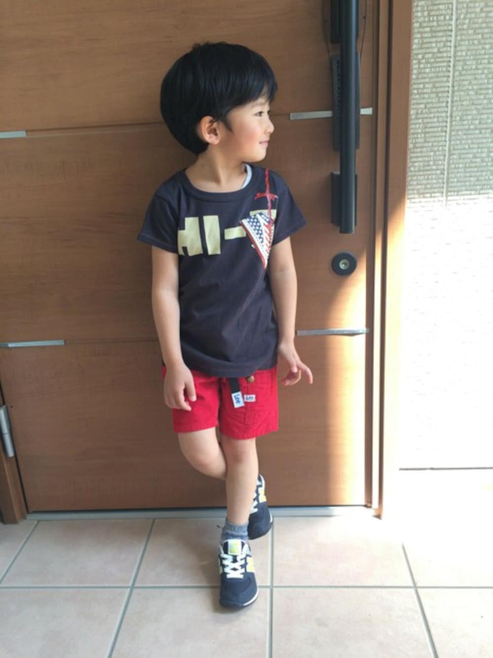 ポカポカ陽気の公園コーディネート。発色が良く細コーデュロイがオシャレなクライミングショーツに、Tシャツは、同じレッドが入ったもので統一しました。ワンランク上のカジュアルショーツがお気に入り。ウエストは、ゴムと紐の仕様で調整しやすいです。