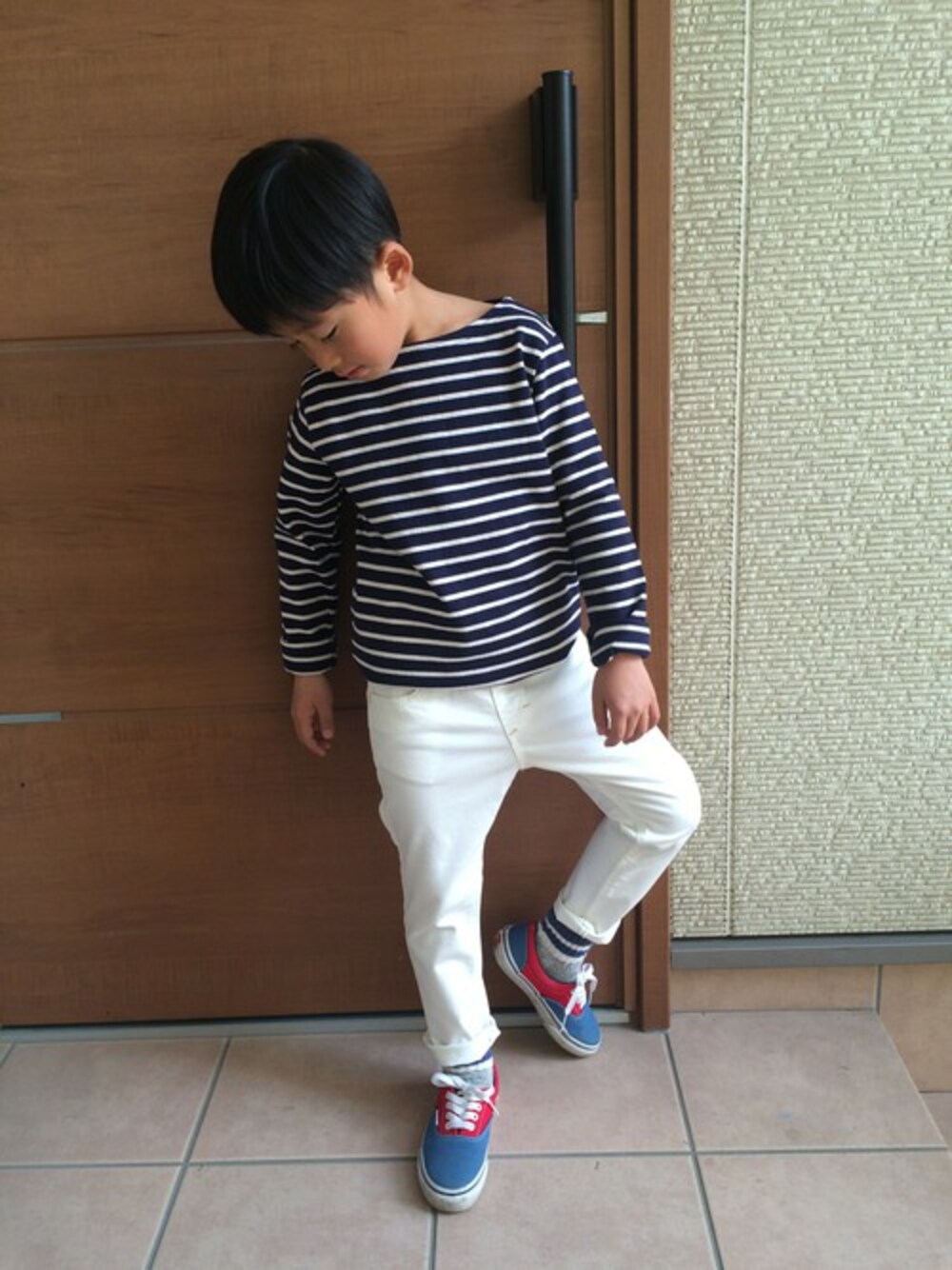 暖かいお正月。ちょっと春を意識したコーディネートで初詣に。ストレッチが効いて履きやすく動きやすいホワイトパンツ!ボーダーを合わせたマリンスタイルに。