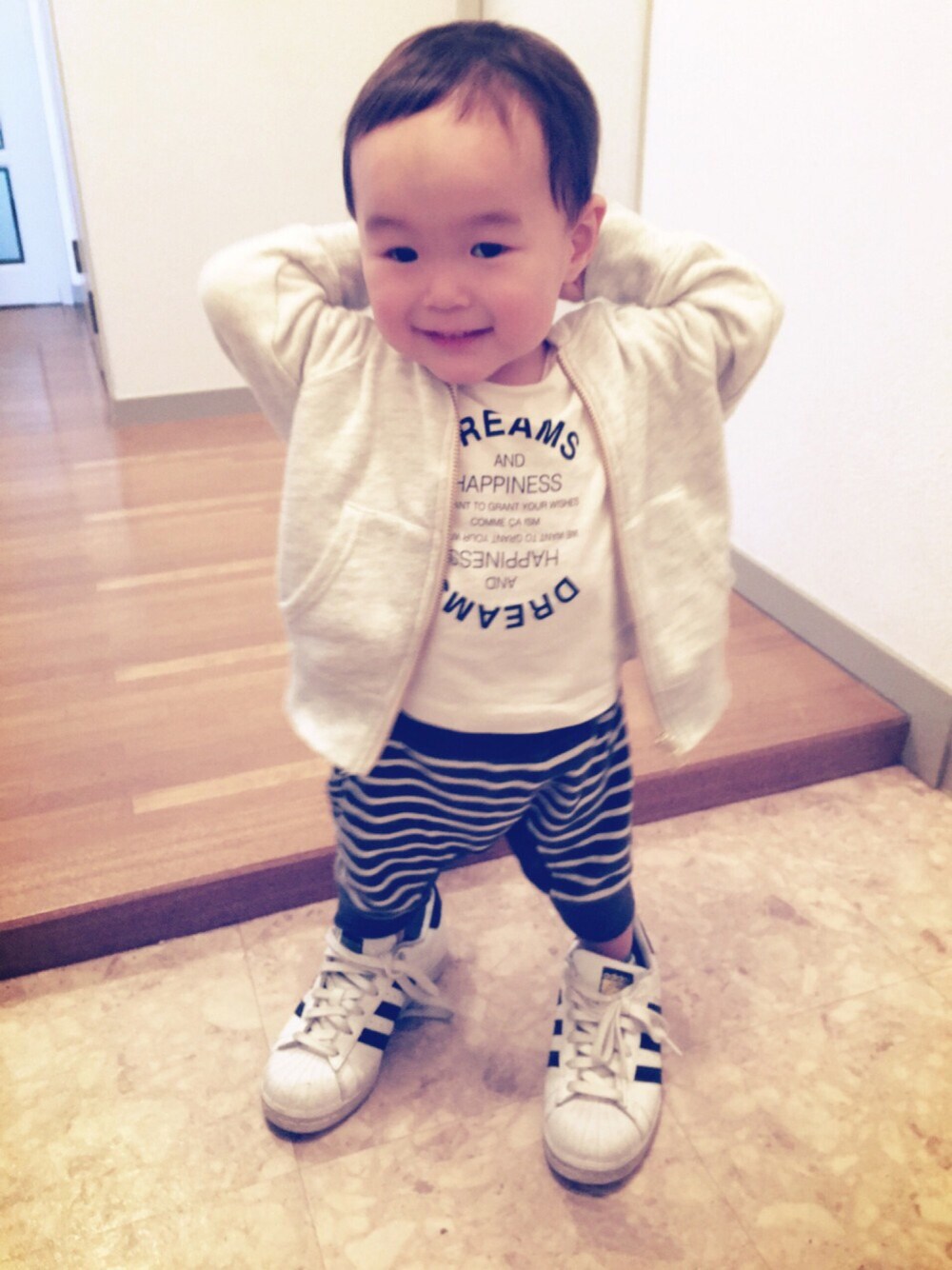 見てくださってありがとうございます☺︎ ♡やsave.フォローありがとうございます💕 今日はホワイト×グレーでまとめてみました。パンツはsaleで買った物。ゆるっとしたシルエットがお気に入り。シンプルな無地も欲しいな👖 気付いたら私の靴を得意げに履いていた😅 そしてこの直後、尻もちつきましたとさ〜