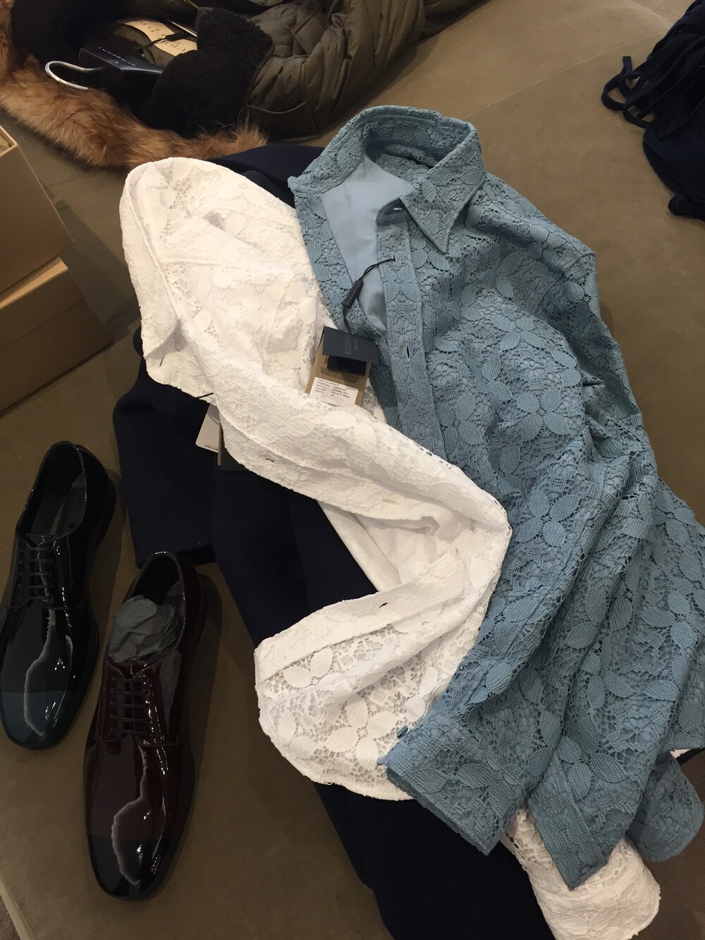 バーバリー2016f/wの受注会に行ってきました。 が、2016s/sのアイテムばっかり見てましたw(ランウェイ後すぐだったのでサンプルすらなかった…) イチオシはアイコンでもあるレースのアイテム! ランウェイでは誰が着るんだよと思ってたのですがしっかりと内張りしてあって、普通に着こなせそうです。価格は11万円ですが、いやいやそれぐらいするのも納得の1枚!欲しい! あと気になったのがパテントレザーのシューズ。つま先のハンドペイント調アクセントが絶妙!欲しい! その2つをカシミアのジョガーパンツと合わせて…って全身やんか! プローサムのバッグも買ったから、春はちょっと見送りかなぁ。さすがに怒られそう…。