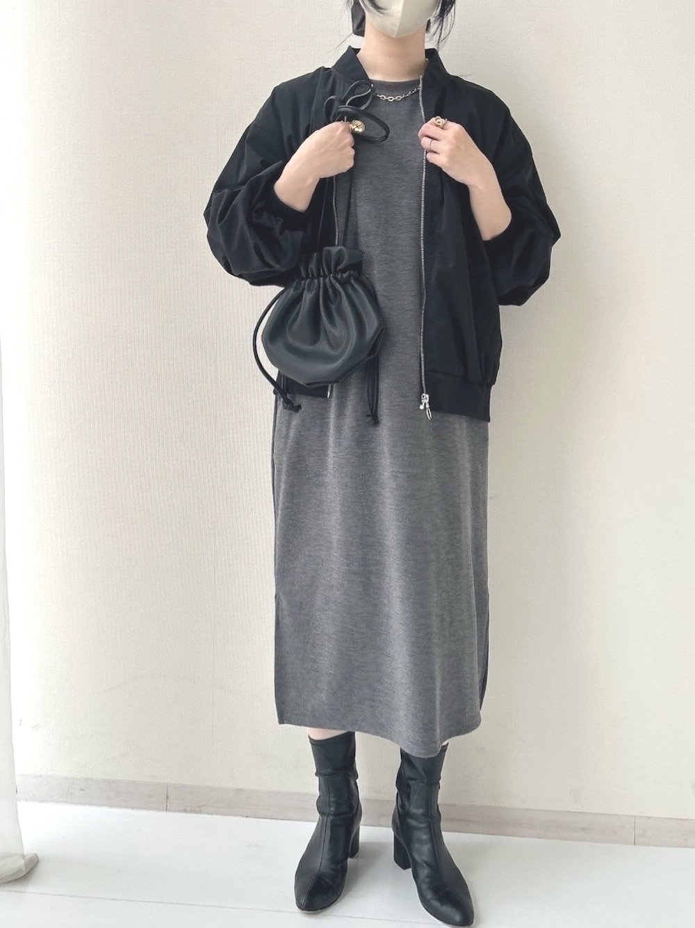 みぃ(nissen本店)のワンピース「ニットソー サイドスリットロング丈ワンピース」を使ったコーディネート