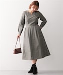 グレー系のグレンチェックが可愛いレディライクなワンピース シルエットも崩れにくいハリのある素材感◎ ロングコートとも相性良きです♡