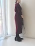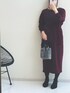 杢グレージュのコートは切り替えがあって少しウエストも絞っているからスタイルアップ効果◎ ワイン色が素敵な裏起毛タイトワンピ ぬくぬくで細見え♡