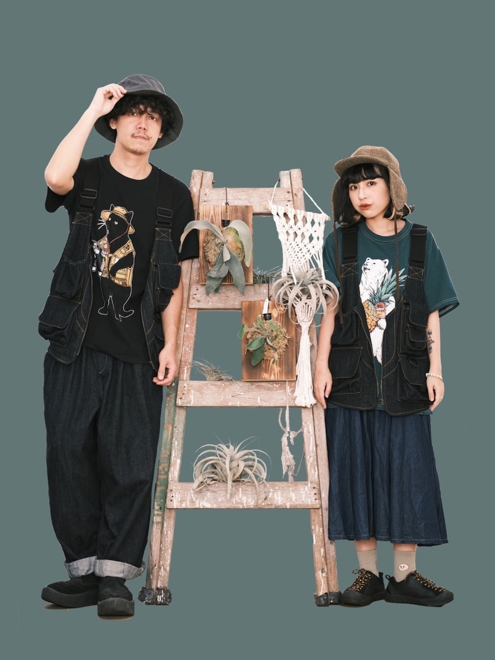 _h.n.d.w_のTシャツ/カットソー「WEB限定 go slow caravan/ゴースローキャラバン 探検猫 クルーネック プリントTシャツ/351908」を使ったコーディネート