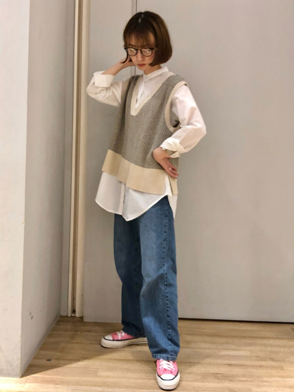 伊達メガネかけてみた日🤓 前回のベストをカジュアルに着回してみました。
