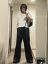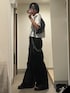 ハルウのスラックス「【CLEL】Vintage Design Belted Flare Pants/ヴィンテージデザイン ベルテッドフレア合皮パンツ」を使ったコーディネート