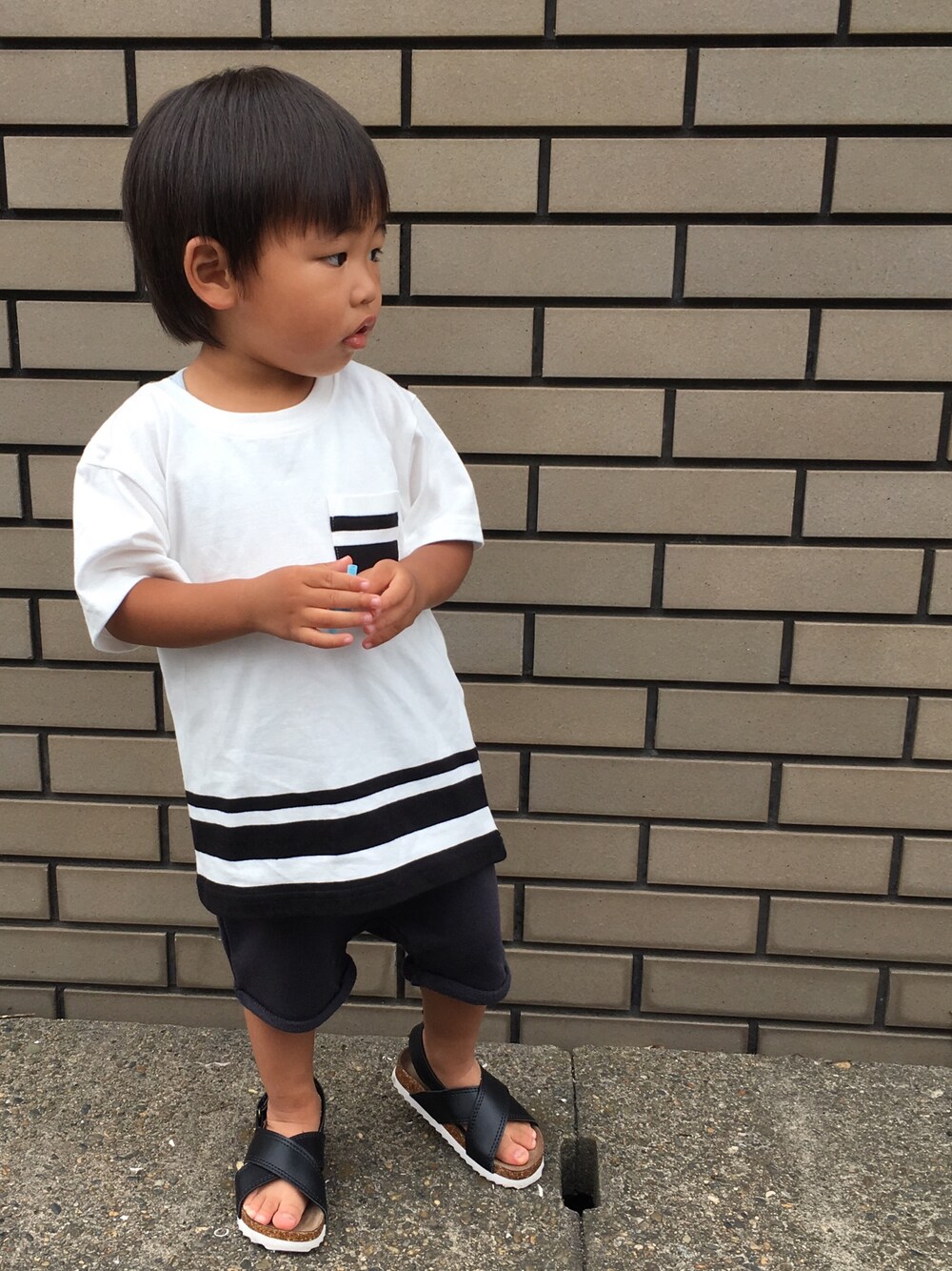 モノトーンコーデ♡トップスはあえて少し大きめサイズをGETしてオーバーサイズで着せてみた(^^)サンダルもお気に入り★