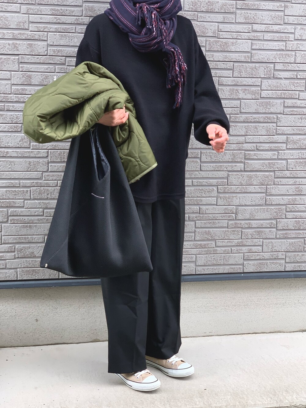 写真のタイミング💦 謎の左手🤜 安定のブラックコーデです🥷