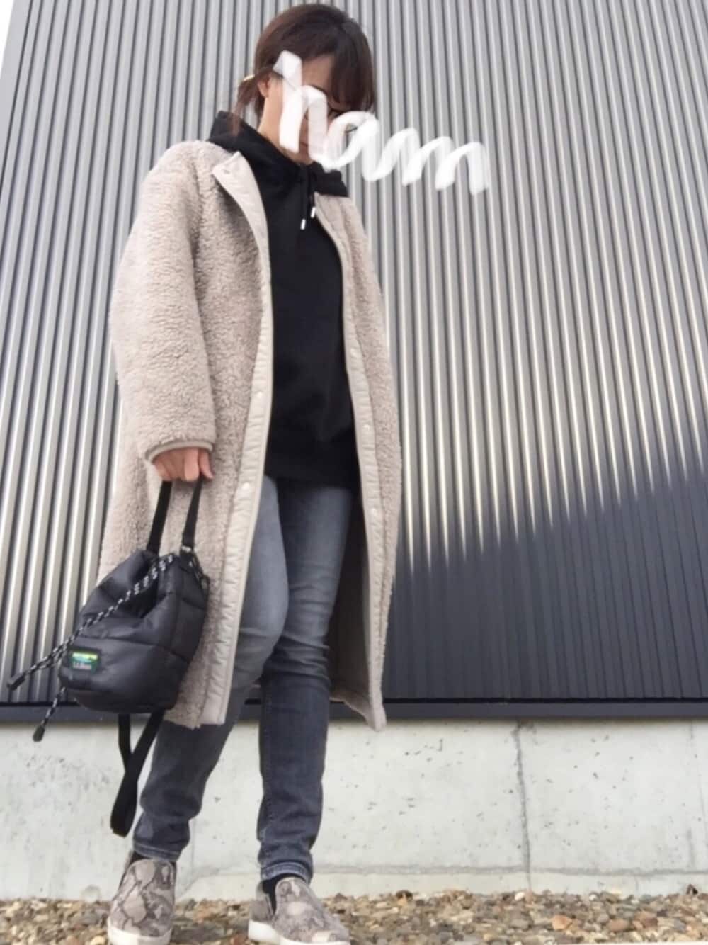 HaMのその他アウター「ボアフリースノーカラーコート」を使ったコーディネート