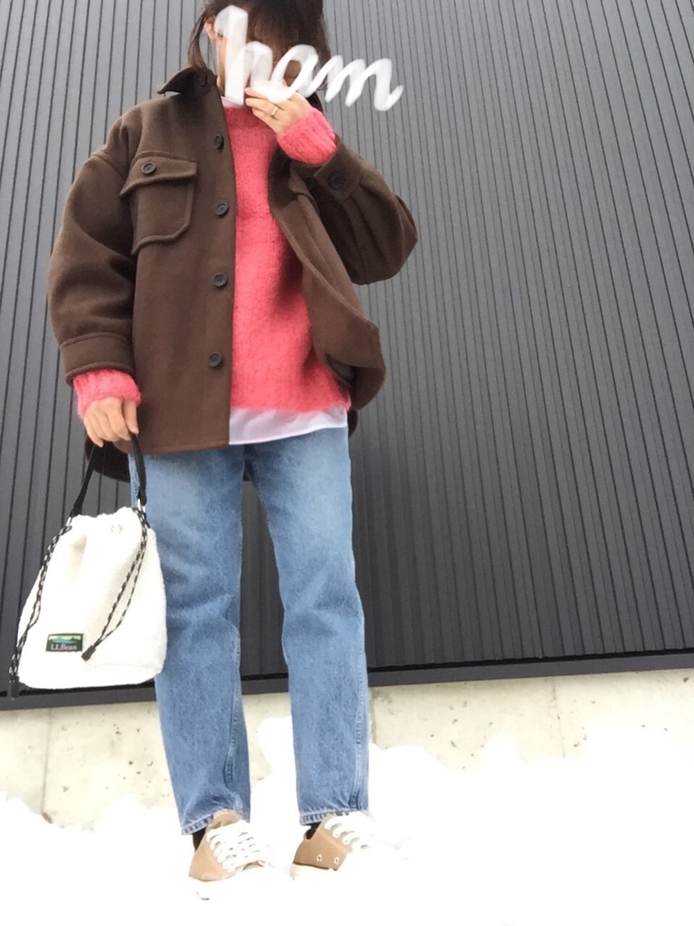 ゾゾの初売りセールでgetしたピンクニットを初おろし🌷 明るい色味が良き💗