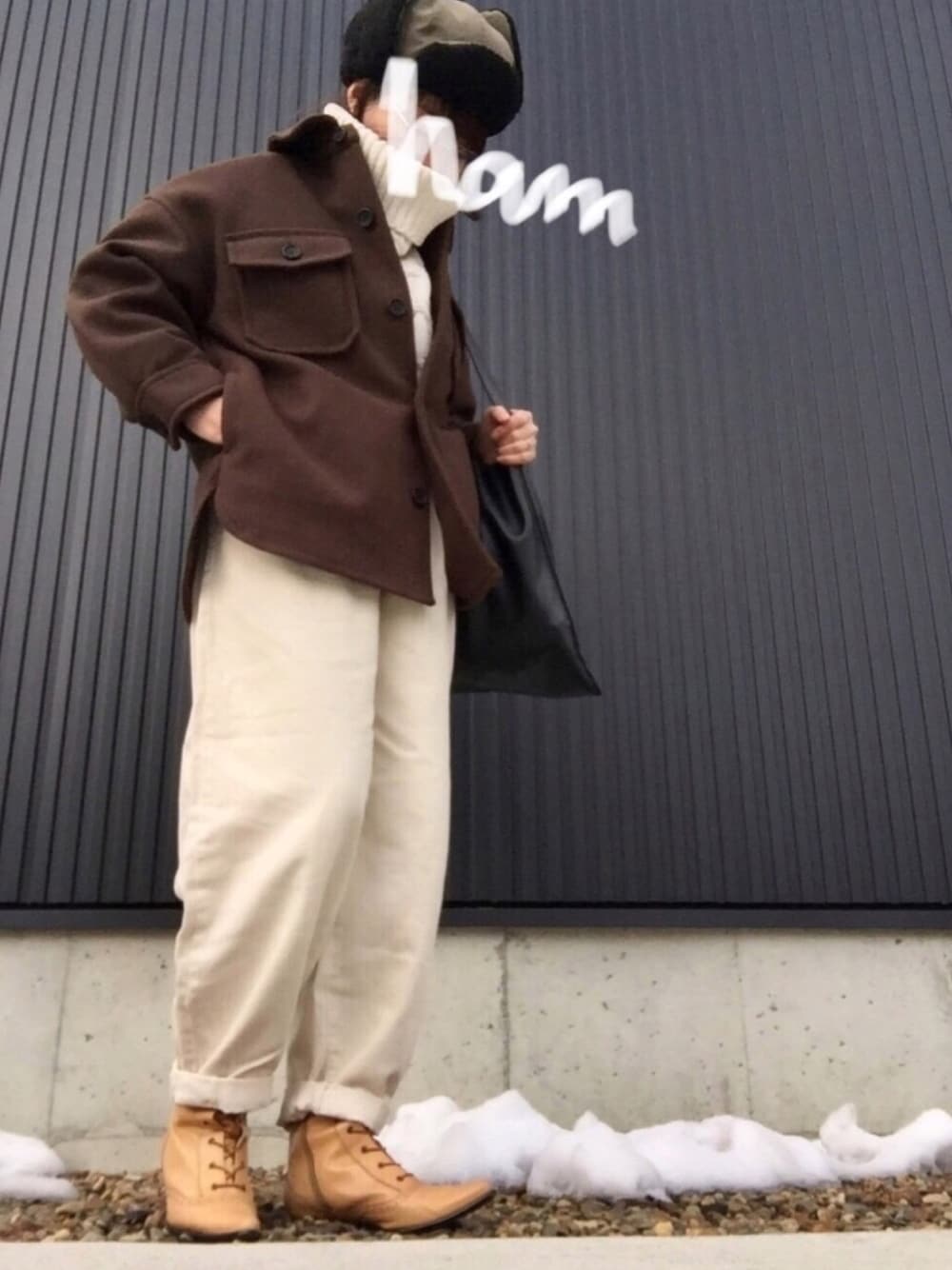 HaMのニット/セーター「ボトルネックケーブルニットプルオーバー」を使ったコーディネート