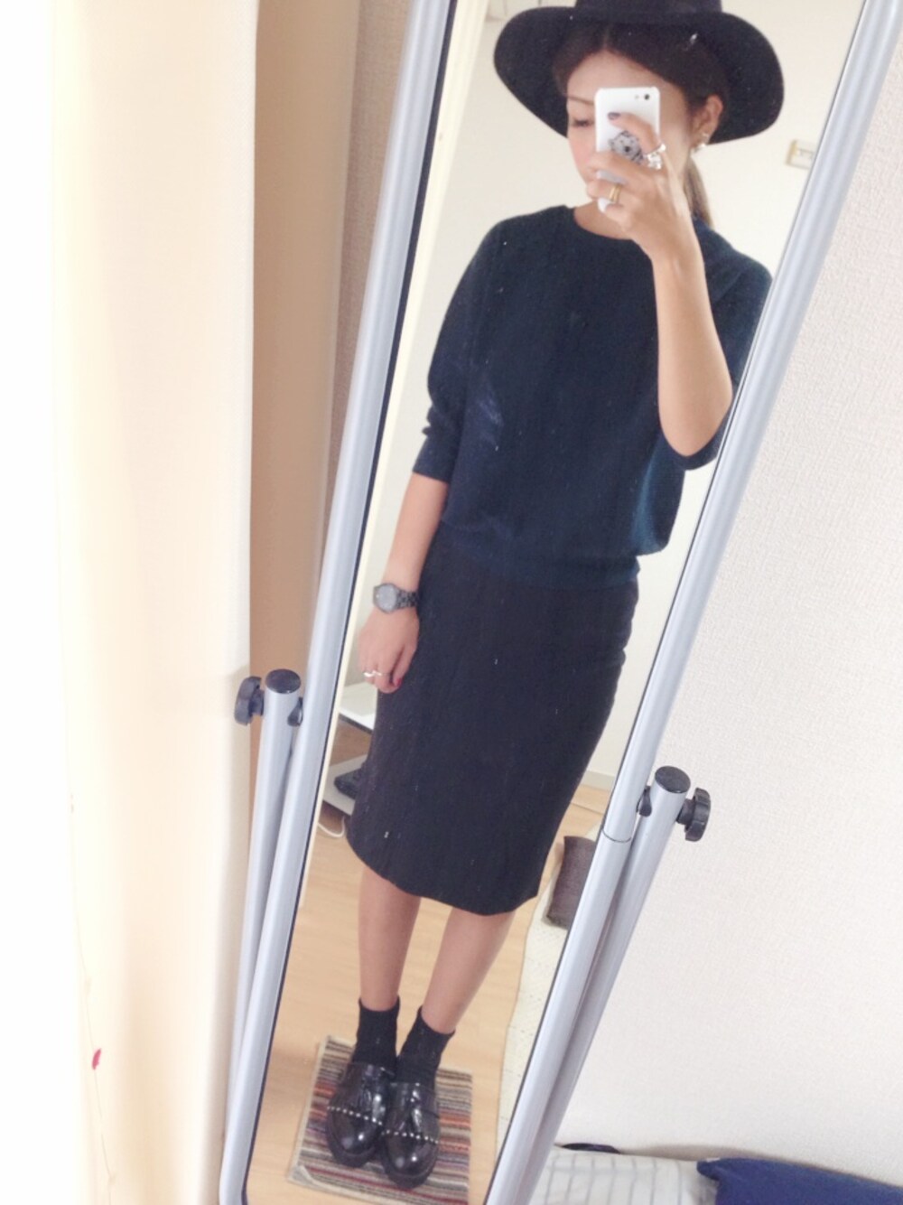 わかりづらいけど、トップスはグリーンです。 ふかみどり好き。 久しぶりのタイトミディ。 今日は、夜更かししますよ。