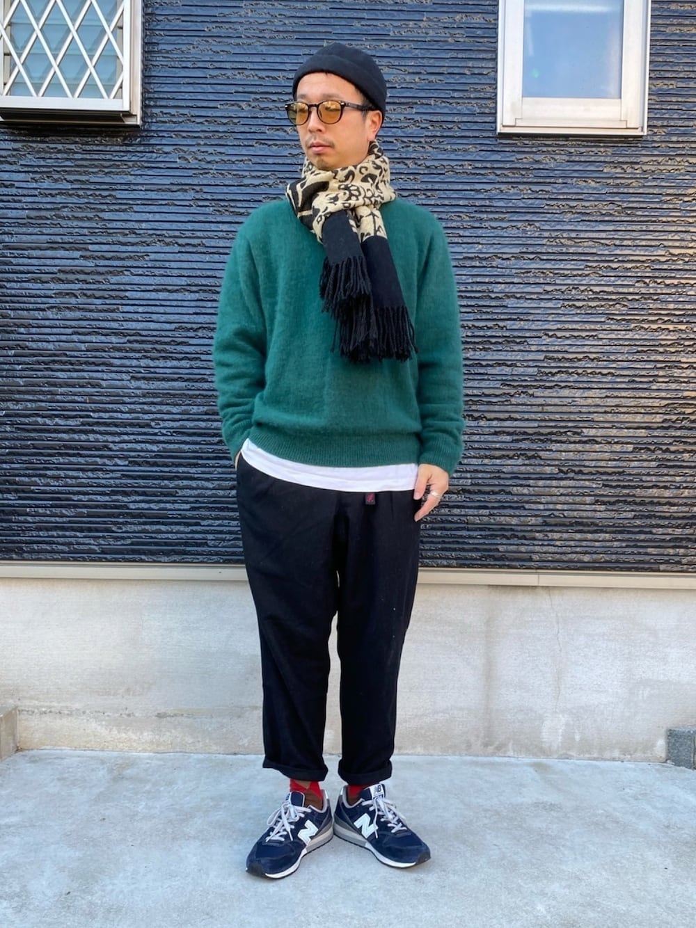 . 新年あけましたコーデ。 初詣には行きませんが、冬のお参りスタイルです。 . ▲Vincent et Mireilleのモヘアニット。 鮮やかすぎないグリーンとモヘアの毛足が冬らしく好きです。 . ▲Gramicciのウールブレンドパンツ。 裏地も着いてて、ほんとにあったかい。 あと、おしゃれ。 . ▲マフラー巻いて落ち着いた雰囲気に。