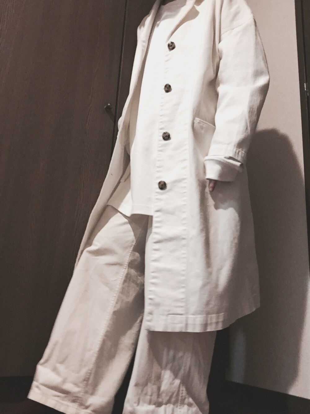 アウター:ホワイトデニム L トップス:シャツ (メンズ) XL パンツ:バギー型パンツ M お初です❁ 自由にスタイリングする人間 ということで、 初めてのコーデ投稿は、オールGUコーデをしました~(๑¯꒳¯๑) メンズものを取り入れることで、オールGUでも可愛くコーディネートできます🌸