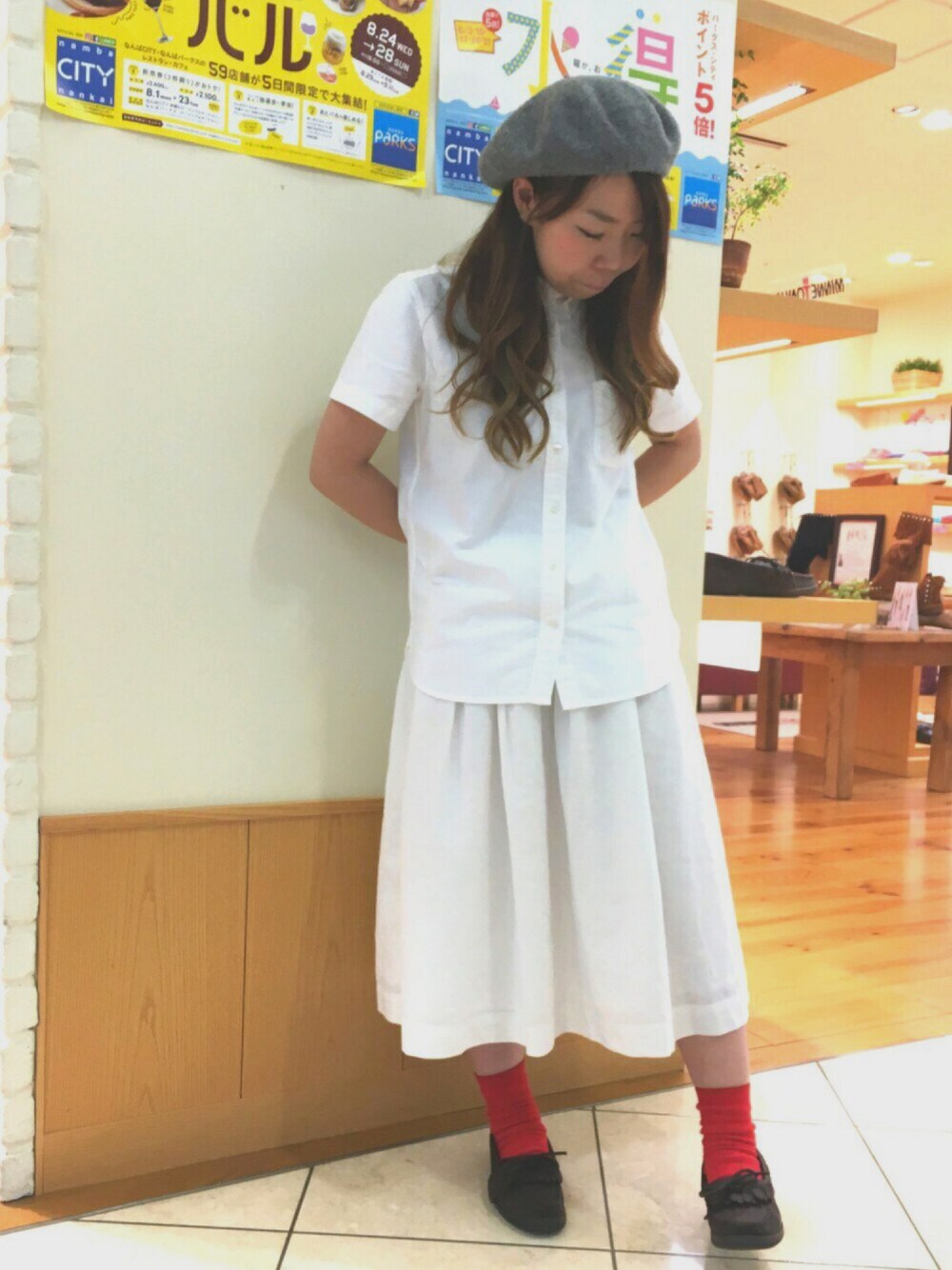 こんばんは〜💫 マイブームの白シャツ集め☝︎✳︎✴︎ スカートも白で統一しアクセントに足元を 温かい色味のムースモカシンでコーデ。 ふわふわで丈夫なムースモカシンは お気に入り中のお気に入りです🙈💓