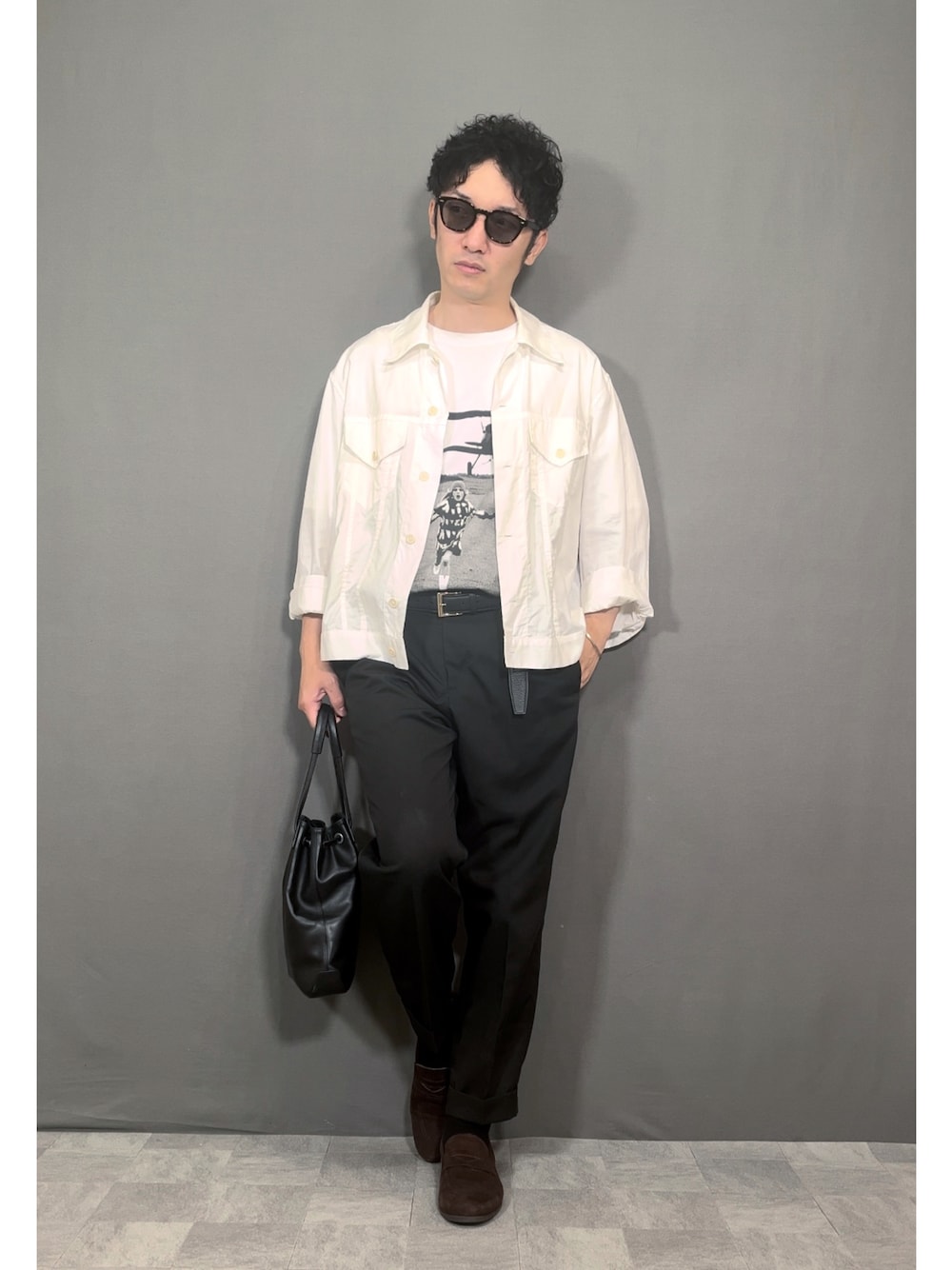 good morning ✨ _ _ _ _ _ _ _ _ _ _ _ _ 【本日のコーデ】 "きれいめカジュアルコーデ" _ _ _ _ _ _ _ _ _ _ _ _ 【Wearing items】 shirt:#bagutta T-Shirts:@theinternationalartcollection pants:@crossclothet_official belt:@cisei.firenze shoes:@ferrante1875 sunglasses:@eyevan_official bracelet:@maisonmargiela bag:@polpetta_official _ _ _ _ _ _ _ _ _ _ _ _ シンプルに ミニマルに 着たいものをミックスするのが 私のSTYLE Have a nice day, everyone✨ _ _ _ _ _ _ _ _ _ _ _ _