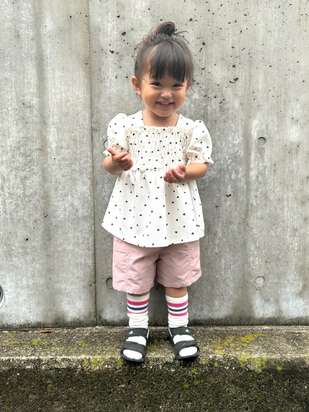 𝐈𝐧𝐬𝐭𝐚𝐠𝐫𝐚𝐦⤵ @haru.haru.haru.family 立体的なガーリーなtopsと ハーフパンツで スポーツMIXコーデ♡ 淡いピンクのハーフパンツは水遊びもいける 神アイテム✨️😇︎👍🏻 ̖́-