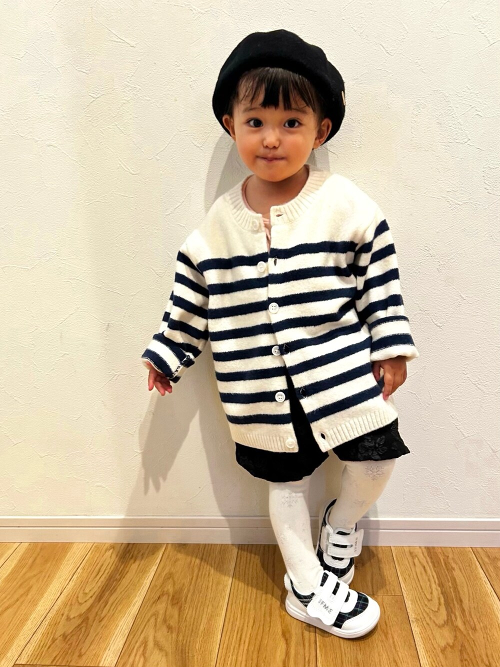 𝐈𝐧𝐬𝐭𝐚𝐠𝐫𝐚𝐦⤵ @haru.haru.haru.family ボーダーカーディガンにベレー帽♡ ジャガード柄のショートパンツにタイツ🍰 インナーのベビーピンクのtopsがかわい♡