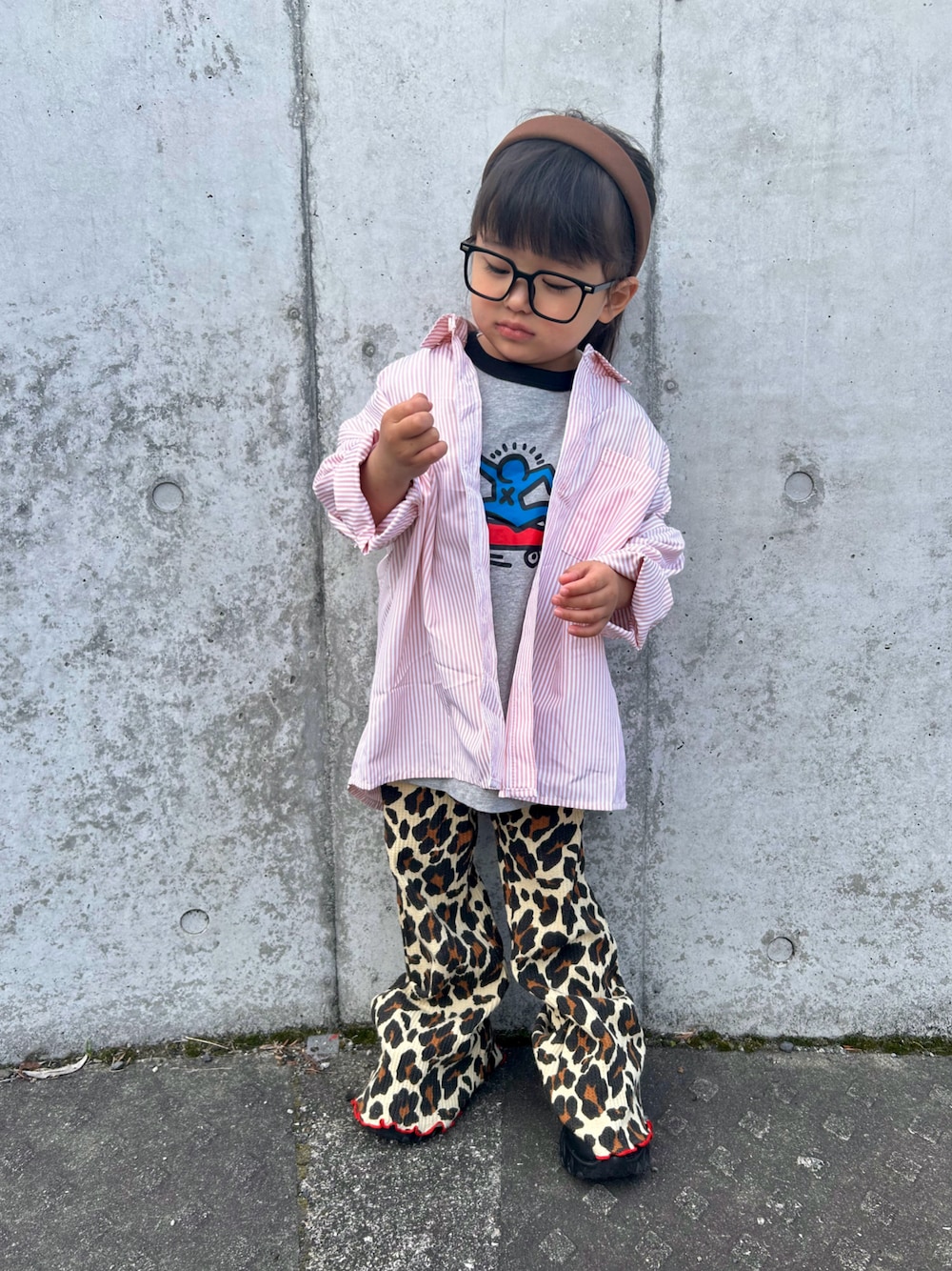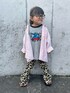 ⒸⒽⒺⒸⓀ 𝗜𝗻𝘀𝘁𝗮𝗴𝗿𝗮𝗺︎ ↯︎ @haru.haru.haru.family ゆるっとしたピンクのストライプシャツに レオパードのフレアパンツを👧🏻 ヘアスタイルは大人っぽくしてバランスを✊🏻´‐