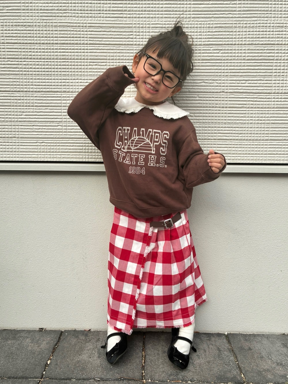𝕝𝕟𝕤𝕥𝕒𝕘𝕣𝕒𝕞 ‣‣@haru.haru.haru.family スウェットにチェックのプリーツスカートでプレッピー𝗦𝘁𝘆𝗹𝗲📚✍🏻 SALEでGETしたプリーツスカートはおっきめチェック柄がかわいい︎👍🏻 ̖́-