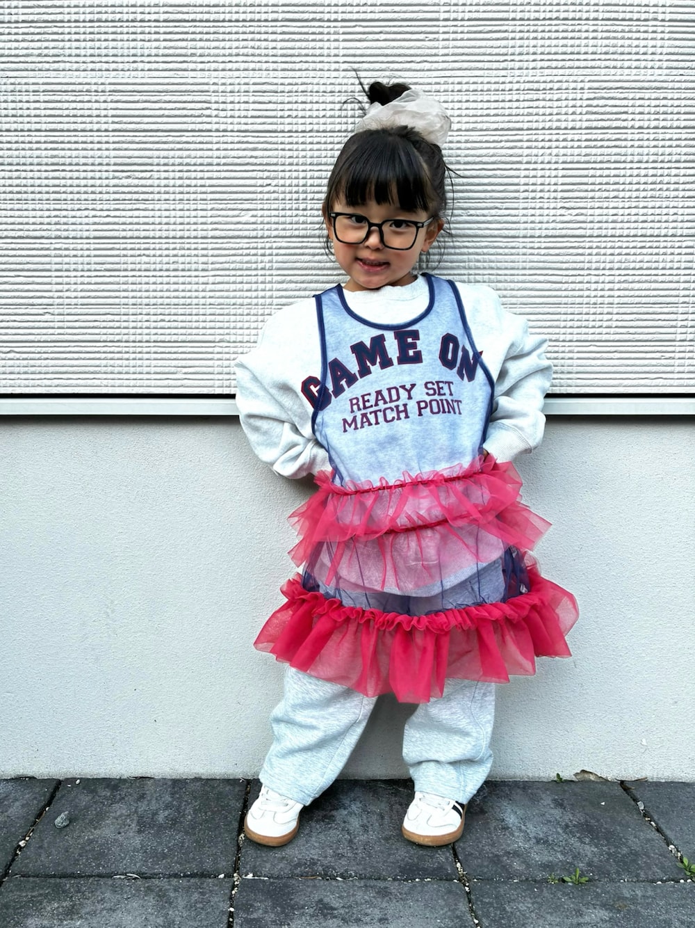 𝕝𝕟𝕤𝕥𝕒𝕘𝕣𝕒𝕞 ‣‣@haru.haru.haru.family 個性的なチュールワンピース😳 どう着まわそうか悩み中🥹 グレーのスウェットセットアップに あわせてみたよ︎👍🏻 ̖́-
