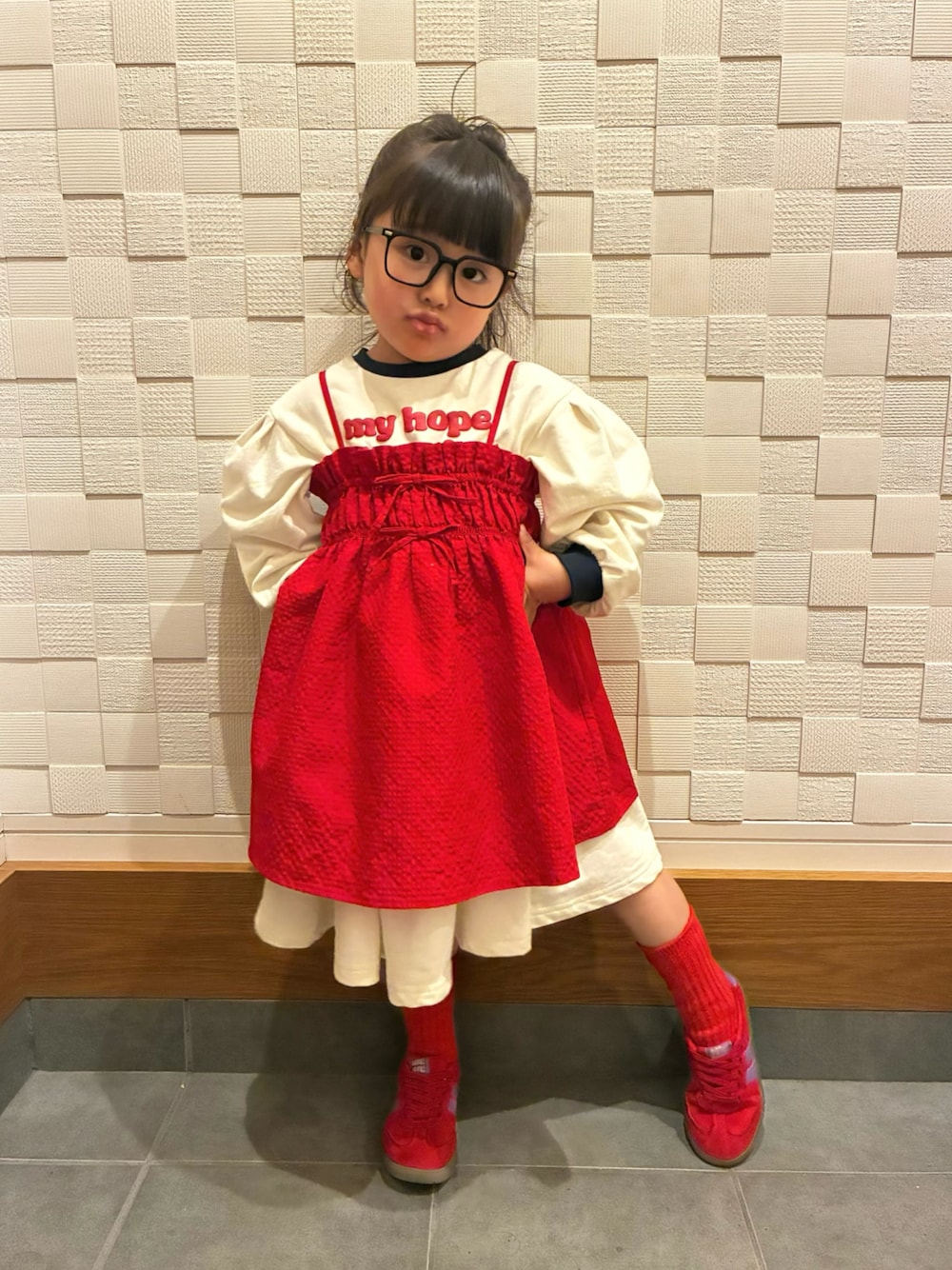 𝕝𝕟𝕤𝕥𝕒𝕘𝕣𝕒𝕞 ‣‣@haru.haru.haru.family この春はピンクより赤色アイテムがお気に入り⸜❤️⸝ ワンピースに、キャミソールチュニックを合わせました😊