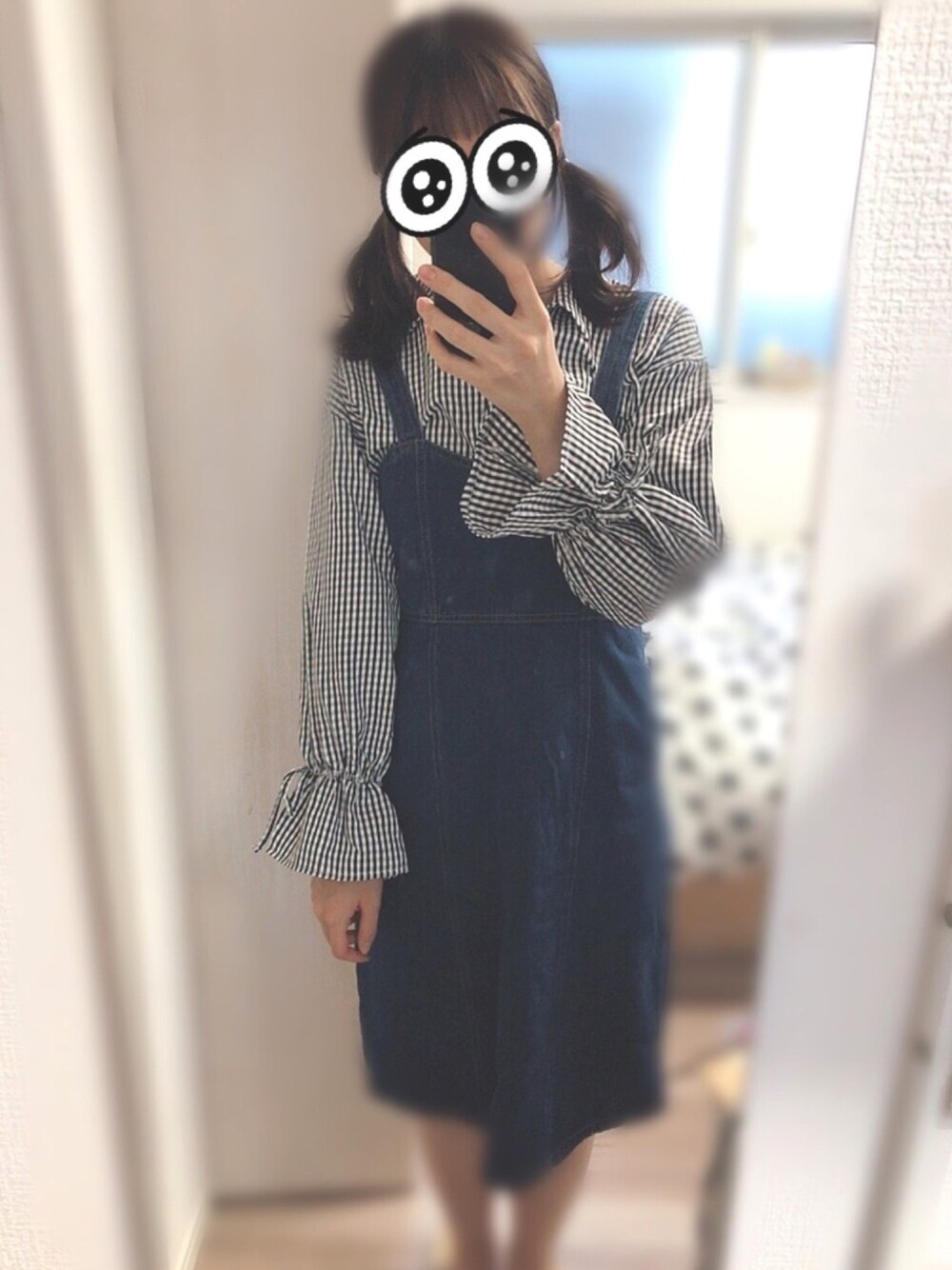 Crispの福袋にはいってたお洋服と and Rのチェックシャツを合わせてみた! 二つ結びしたらなんだか幼くなった🍼 チェックシャツのお袖にリボンついてるの! 可愛すぎる( ⸝⸝⸝⁼̴́⌄⁼̴̀⸝⸝⸝)