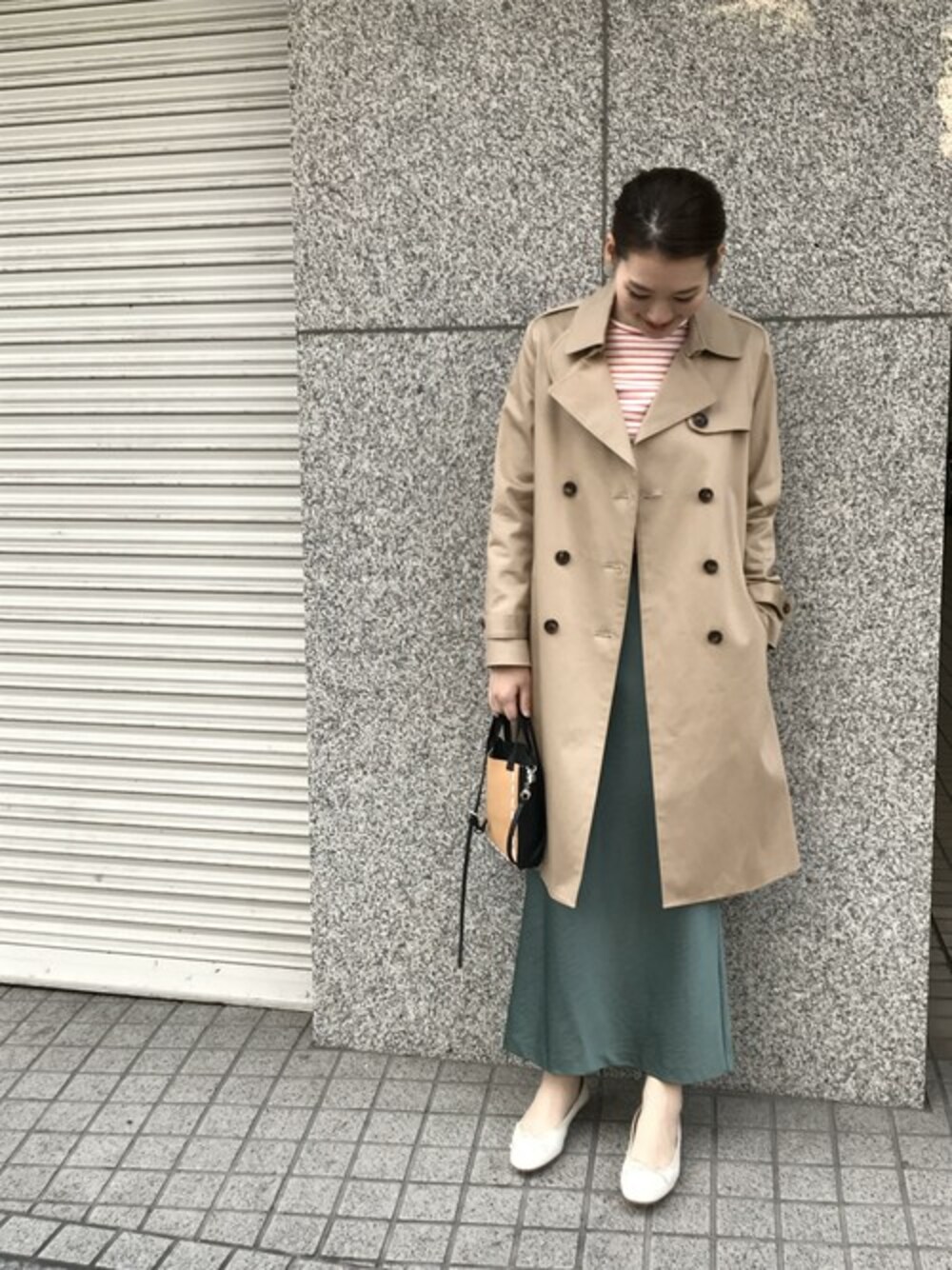 ROSSO自慢の王道トレンチコート★ ボーダーのカジュアルな雰囲気をサテンスカートで女性らしく。