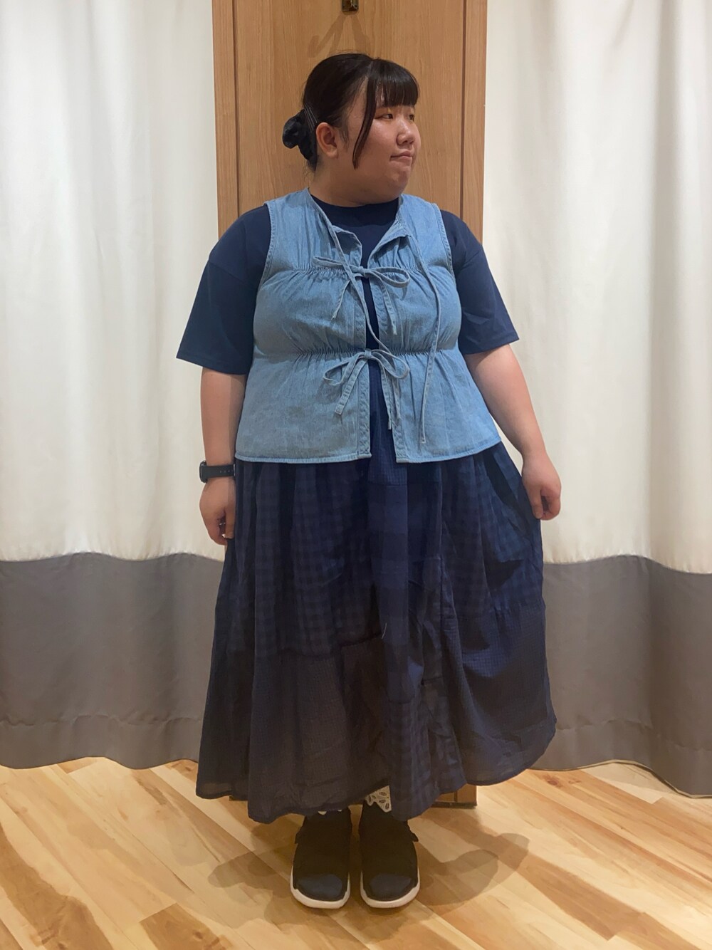 ネイビーのワンピースにブルーのベストを合わせて統一感を出しました💙🩵