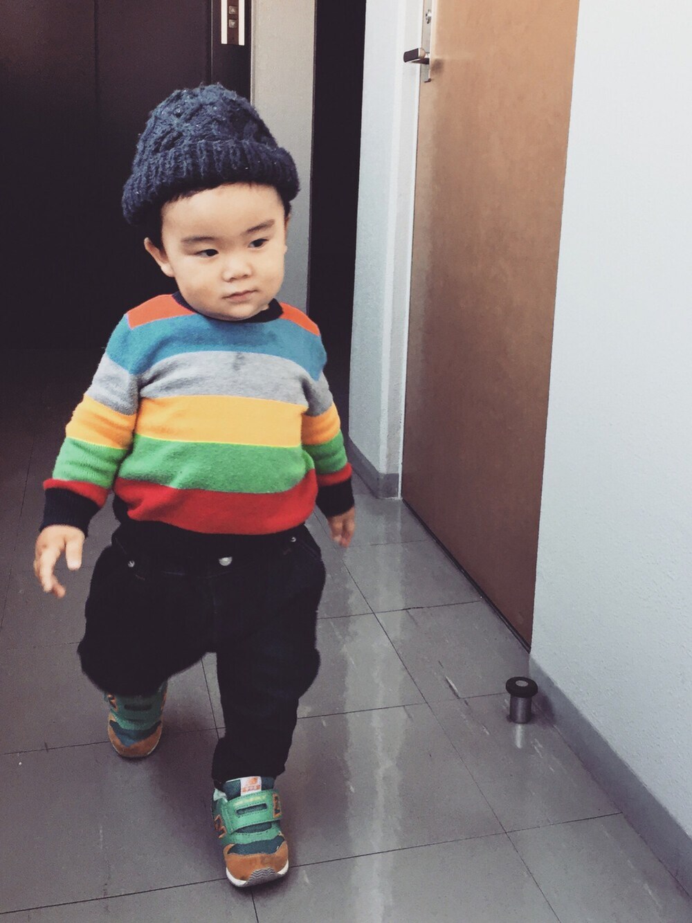 このニット、首回り狭くてびっくりする。 頭でかい息子なもんで、着脱大変😭 でもお気に入り!