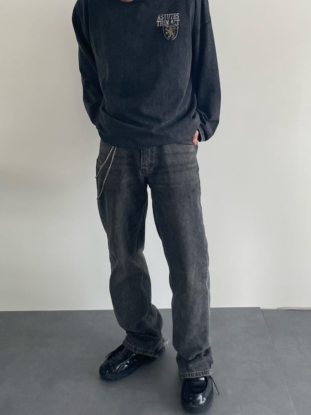hamburgerboy(MONO-MART)のTシャツ/カットソー「【CIYOT-シヨウト-】ヴィンテージ加工 スノーウォッシュ エンブレム刺繍 ロゴパッチ長袖Tシャツ」を使ったコーディネート