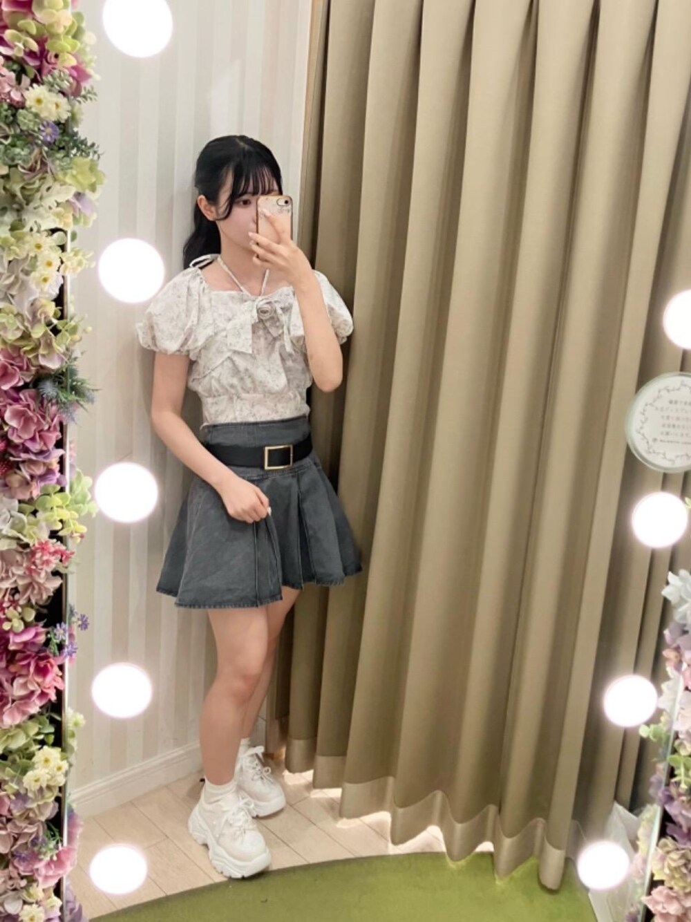 トレンドのローズモチーフのデザインが可愛らしいブラウス🌹 肩の部分にゴムが入ってるので、オフショルでも着ていただけます✨ スカートは後ろがゴムになってるので履きやすいです! ハイウエストなので脚長効果抜群です🎶