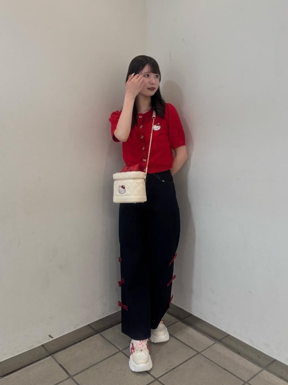 Eri.(MAJESTIC LEGON )のショルダーバッグ「ハローキティ キルティングバニティ」を使ったコーディネート