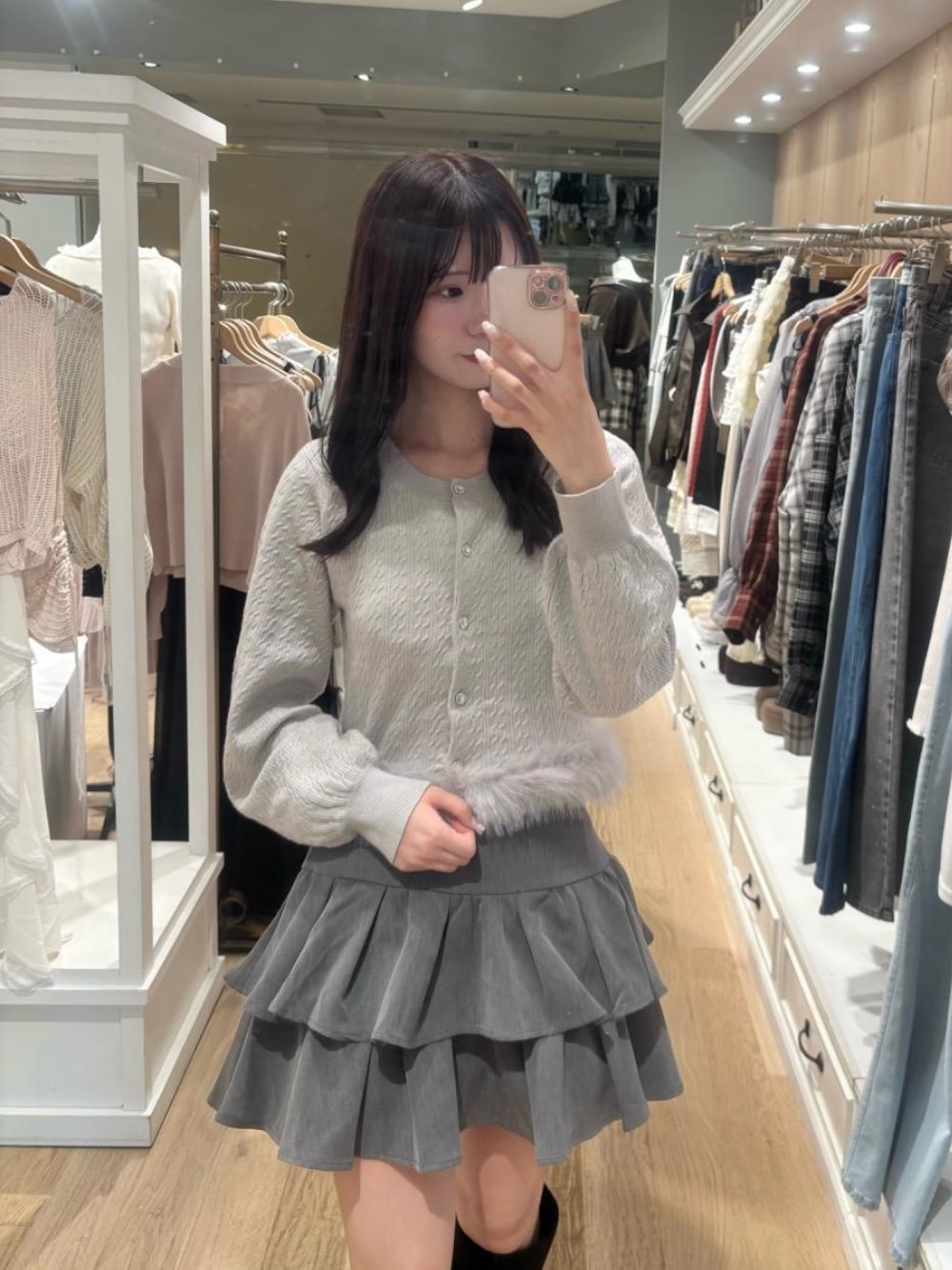 キラキラしたボタンとファーが可愛いカーディガン🤍 今の時期1枚で着るのにピッタリのニット✨ ブーツは後ろのレースアップで調節可能です!