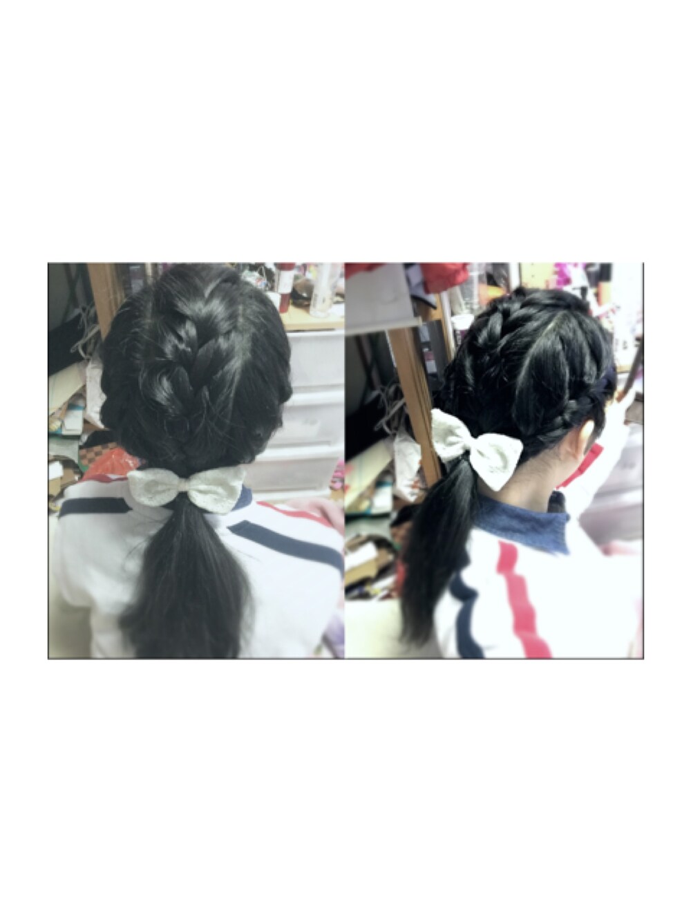 3つの三つ編みを1つにまとめてバレッタでパチ:-)