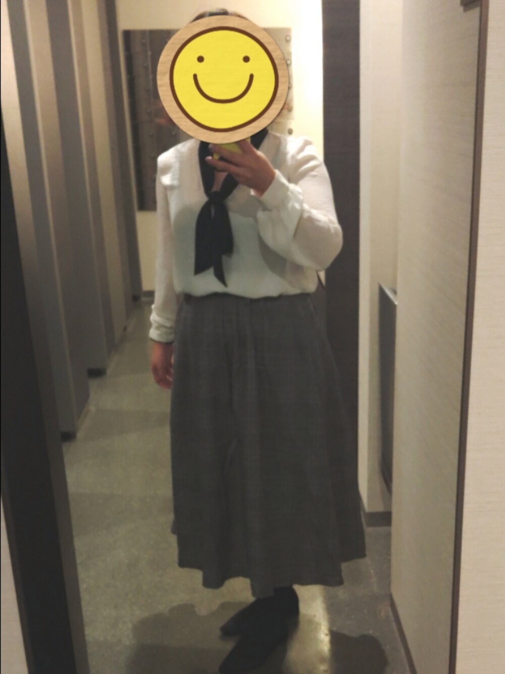 このスカートの時は、ちょっとお嬢風にしたい。もうオバだけど。 ブラウスもう死にかけだから、こんなリボン付きみたいなやつ欲しいな。 スカートギリギリ…これ以上太るなよお前。マジで。