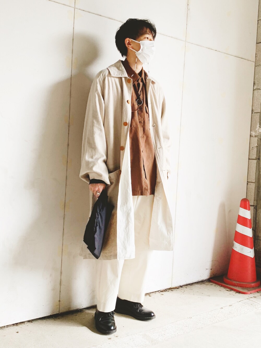 オフホワイト×ブラウンコーデ めっちゃ可愛いんだよこのコート。「easy to wear」の20SS。リネン混で質感、シルエット、長さ、ディティールも最高。
