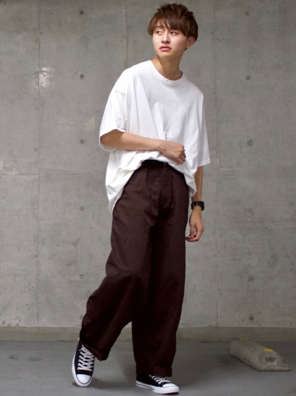 ホワイト+ブラウン+ブラック ご覧くださりありがとうございます😊 今日のコーデはタックインコーデです! アドラーのバルーンパンツがワイドなのに足長効果があるため タックインととても相性がいいです✨✨✨ 今回は前だけにしてみました! あまりこのような着こなしはしないので とても新鮮です😁 このコーデを気に入っていただけたら いいね・お気に入り・フォローなど よろしくお願いします! Instagramもやっています! 是非ご覧ください💁♂️