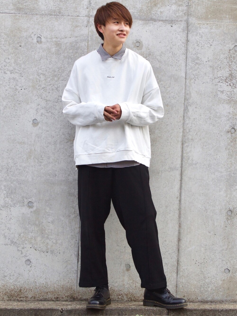 ホワイト+ブラック ご覧くださりありがとうございます😊 今日はモノトーンコーデです!✨ remerのダボっとしたスウェットに DOOPZのギンガムチェックシャツの組み合わせほんとに可愛い😍 ワイドパンツの他にも スラックスやスキニーでも合うと思います! このコーデを気に入っていただけたら いいね・お気に入り・フォロー 宜しくお願い致します!🙇♂️ Instagramもやっています! そちらも是非ご覧ください!💁♂️