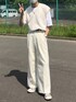 夏のコールホワイトコーデ 緩くなりすぎないようにベストタックインして締めるのがポイント 早くサンダル欲しい🩴