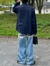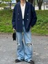 ブレザーを使ったきれいめカジュアルコーデ✨ インナーをVネックにしたり、ダメージデニムを履いたりしベーシックなコーデを差別化しました🌀